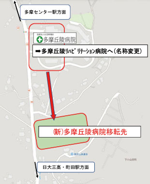 小田急線 町田駅下車 神奈中バス 多摩丘陵病院下車 (25分)案内図